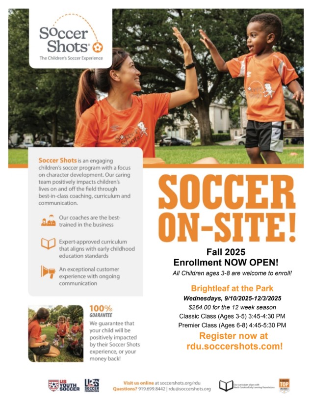 Soccer Shots 3:45 pm – 5:30 pmDecember 3, 2025 Brightleaf at the Park Clubhouse2003 Copper Leaf PkwyDurham, NC 27703United States9197972419View LocationMap Brightleaf at the Park Clubhouse Posted by Genise iCal Google Calendar View full calendar